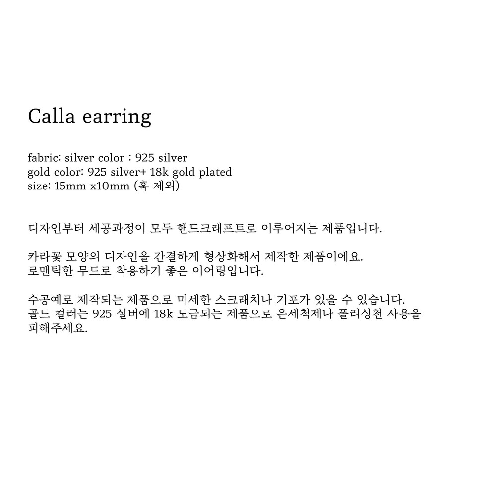 (핸드메이드 제품의 특성상 모든 마감처리가 균일하기 어렵습니다./ 주물로 작업하는 은 제품 특성상 기포나 스크래치가 있을 수 있습니다. / 은침 제품의 경우 무른 은의 특성상 배송과정이나 포장을 뜯는 과정에서 휘어짐이 발생할 수 있습니다./