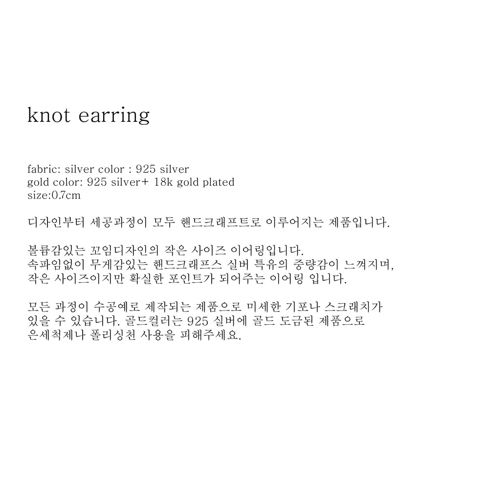 (핸드메이드 제품의 특성상 모든 마감처리가 균일하기 어렵습니다./ 주물로 작업하는 은 제품 특성상 기포나 스크래치가 있을 수 있습니다. / 은침 제품의 경우 무른 은의 특성상 배송과정이나 포장을 뜯는 과정에서 휘어짐이 발생할 수 있습니다./