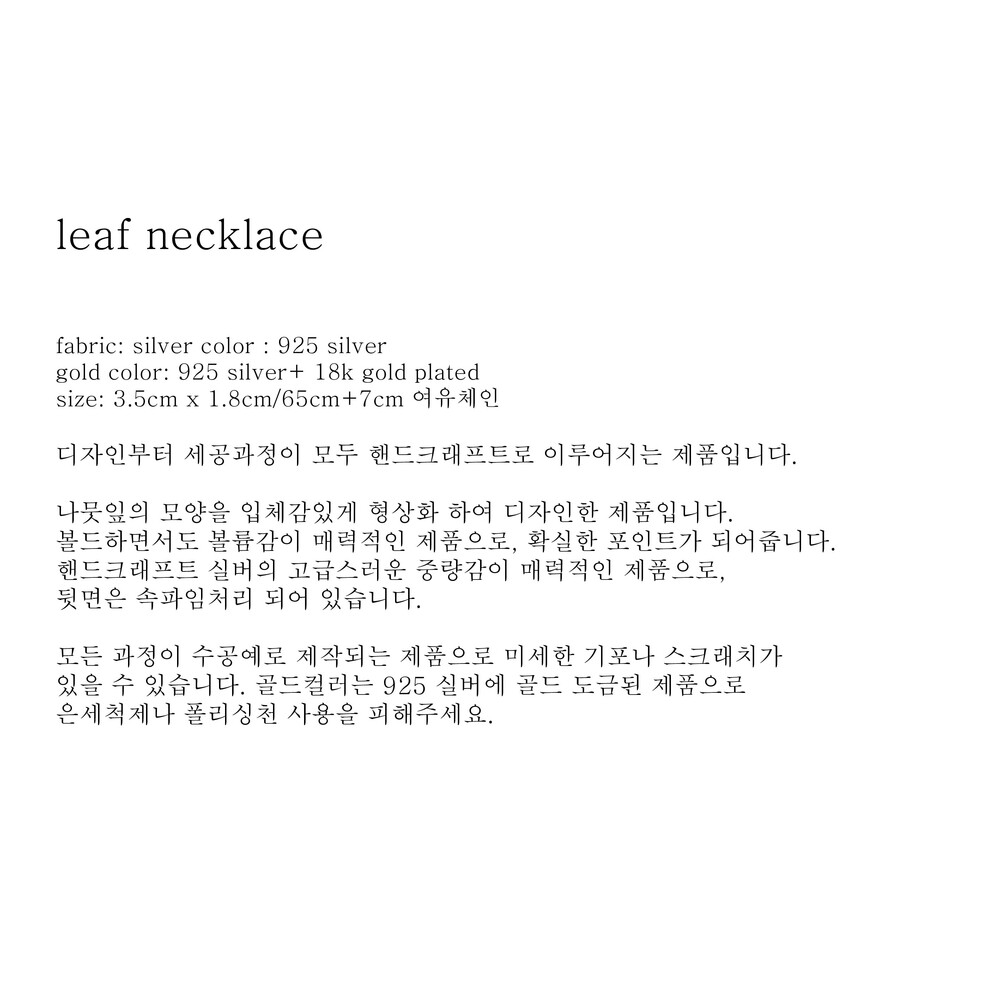 (핸드메이드 제품의 특성상 모든 마감처리가 균일하기 어렵습니다./ 주물로 작업하는 은 제품 특성상 기포나 스크래치가 있을 수 있습니다. / 은침 제품의 경우 무른 은의 특성상 배송과정이나 포장을 뜯는 과정에서 휘어짐이 발생할 수 있습니다./