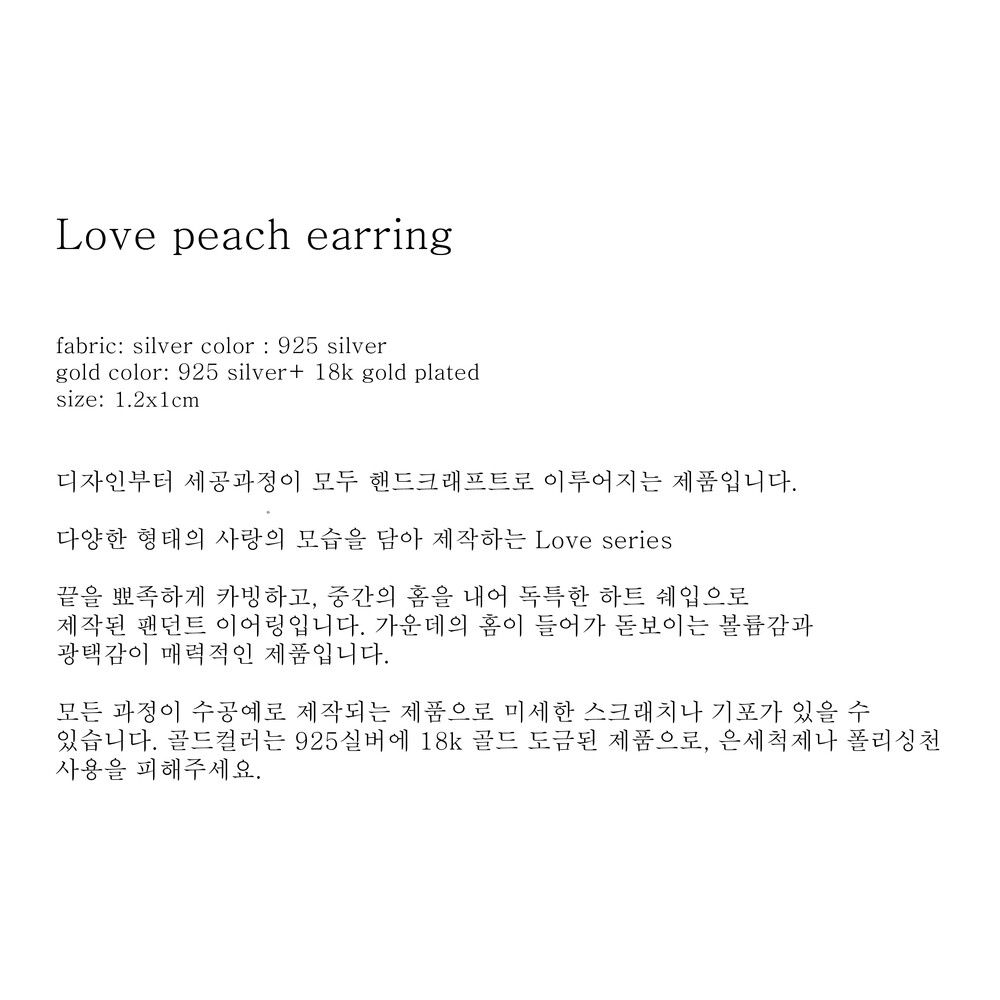 (핸드메이드 제품의 특성상 모든 마감처리가 균일하기 어렵습니다./ 주물로 작업하는 은 제품 특성상 기포나 스크래치가 있을 수 있습니다. / 은침 제품의 경우 무른 은의 특성상 배송과정이나 포장을 뜯는 과정에서 휘어짐이 발생할 수 있습니다./