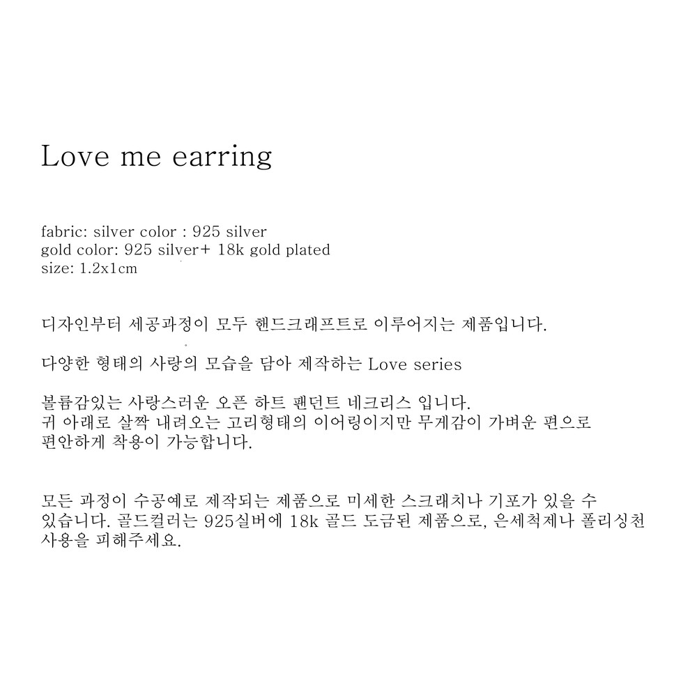 (핸드메이드 제품의 특성상 모든 마감처리가 균일하기 어렵습니다./ 주물로 작업하는 은 제품 특성상 기포나 스크래치가 있을 수 있습니다. / 은침 제품의 경우 무른 은의 특성상 배송과정이나 포장을 뜯는 과정에서 휘어짐이 발생할 수 있습니다./