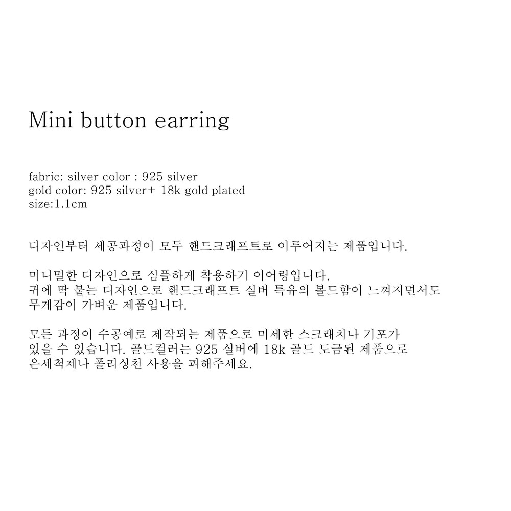 (핸드메이드 제품의 특성상 모든 마감처리가 균일하기 어렵습니다./ 주물로 작업하는 은 제품 특성상 기포나 스크래치가 있을 수 있습니다. / 은침 제품의 경우 무른 은의 특성상 배송과정이나 포장을 뜯는 과정에서 휘어짐이 발생할 수 있습니다./