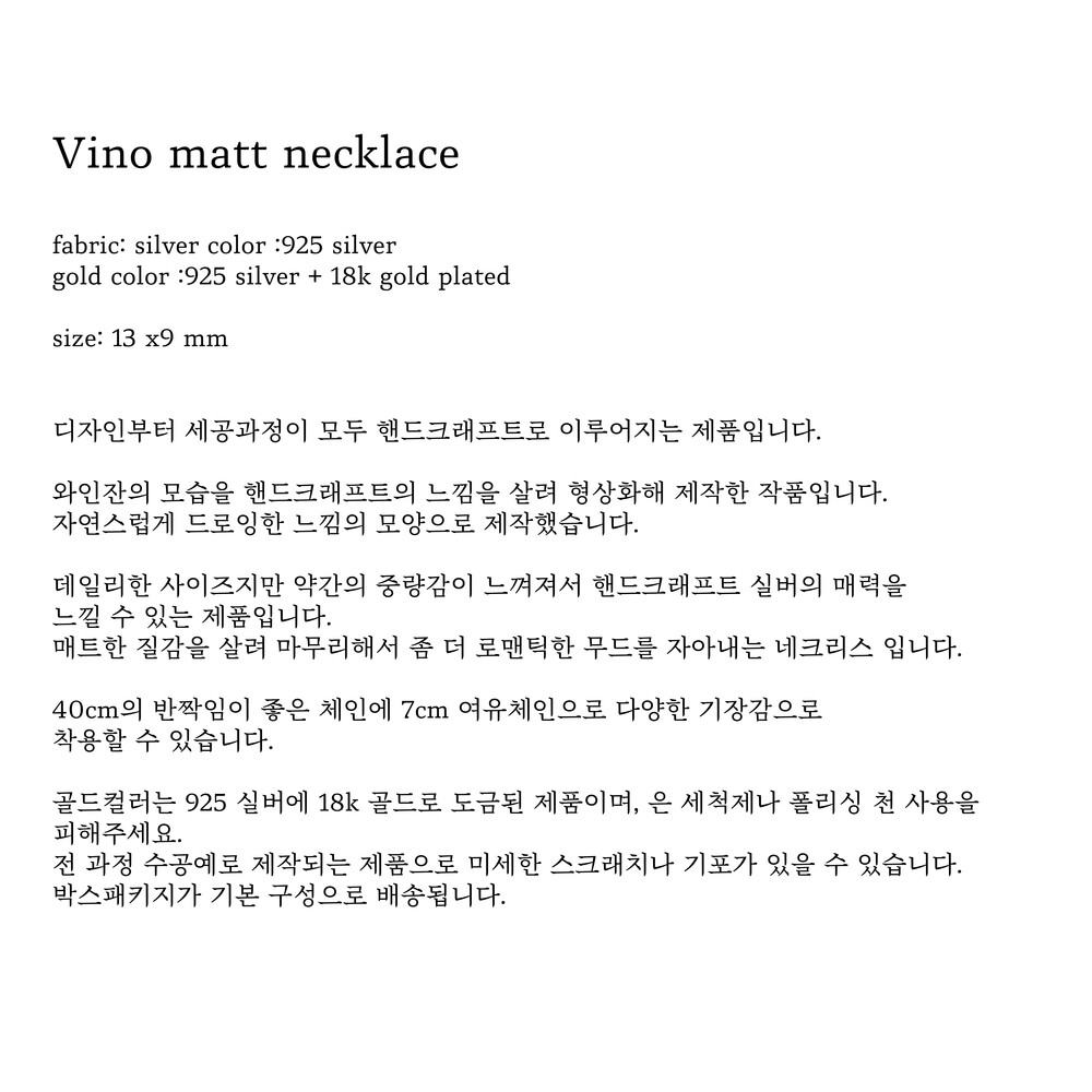 (핸드메이드 제품의 특성상 모든 마감처리가 균일하기 어렵습니다./ 주물로 작업하는 은 제품 특성상 기포나 스크래치가 있을 수 있습니다. / 은침 제품의 경우 무른 은의 특성상 배송과정이나 포장을 뜯는 과정에서 휘어짐이 발생할 수 있습니다./